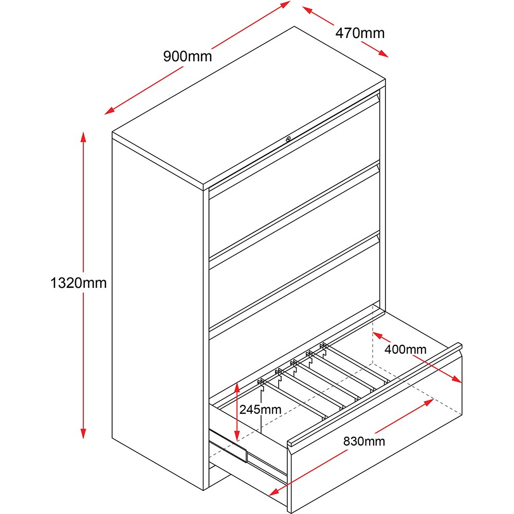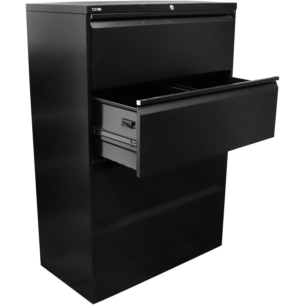 • Rapidline GO Lateral Filing  Cabinet 4 Drawer 900W x 473D x 1321mmH Black