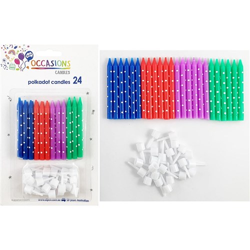 Alpen Birthday Candle With Holders Polka dot Neon Assorte Colours Pack of 24
