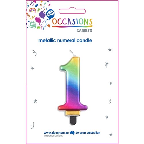 Alpen Numerical Birthday Candle No. 1 Metallic Rainbow