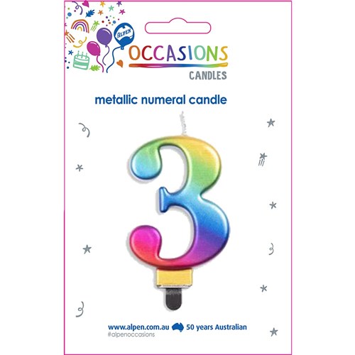 Alpen Numerical Birthday Candle No. 3 Metallic Rainbow