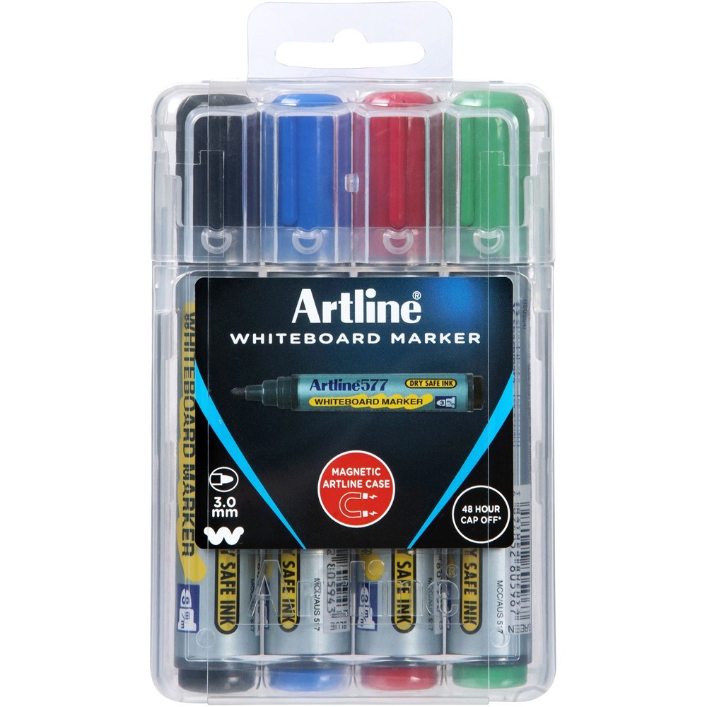 Artline 577 Whiteboard Markers Bullet Hard Case Assorted Pack Of 4