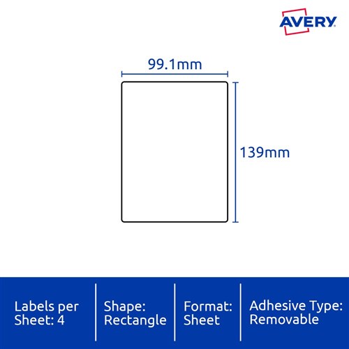 • Size: 99.1x139mm 80 labels, 20 sheets. 4 labels per sheet (4UP).