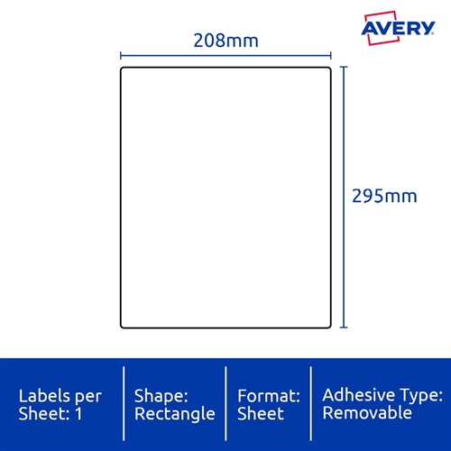 • Size: 208x295mm 20 labels, 20 sheets. 1 labels per sheet (1UP).