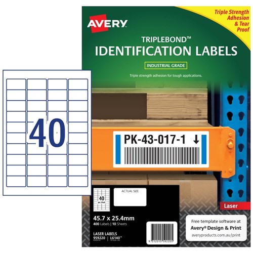 Avery 959220 Triple Bond Industrial Labels White L6140