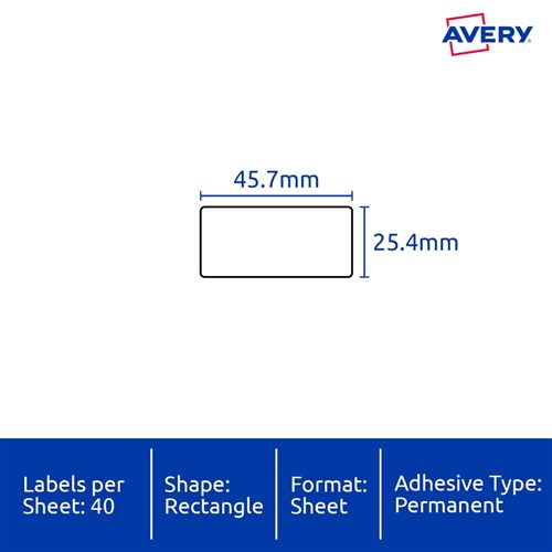 • Size: 45.7x25.4mm 400 labels, 10 sheets. 40 labels per sheet (40UP).