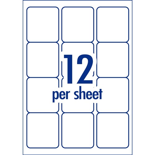 • Size: 63.5 x 72mm, 1200 labels, 100 sheets. 12 labels per sheet (12UP).
