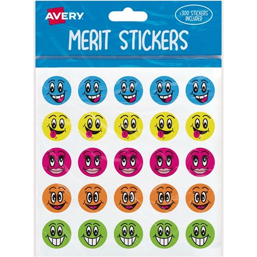 Avery Merit Stickers 300 Labels Smiley Faces Assorted