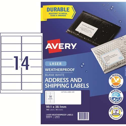 Avery Weatherproof Shipping Laser Labels L7073 99.1x38.1mm White 140 Labels, 10 Sheets
