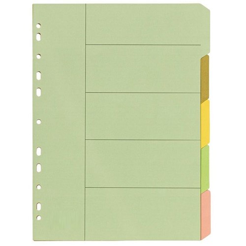 Bibbulmun Manilla Divider A4 5 Tab Plain Pastel Colours