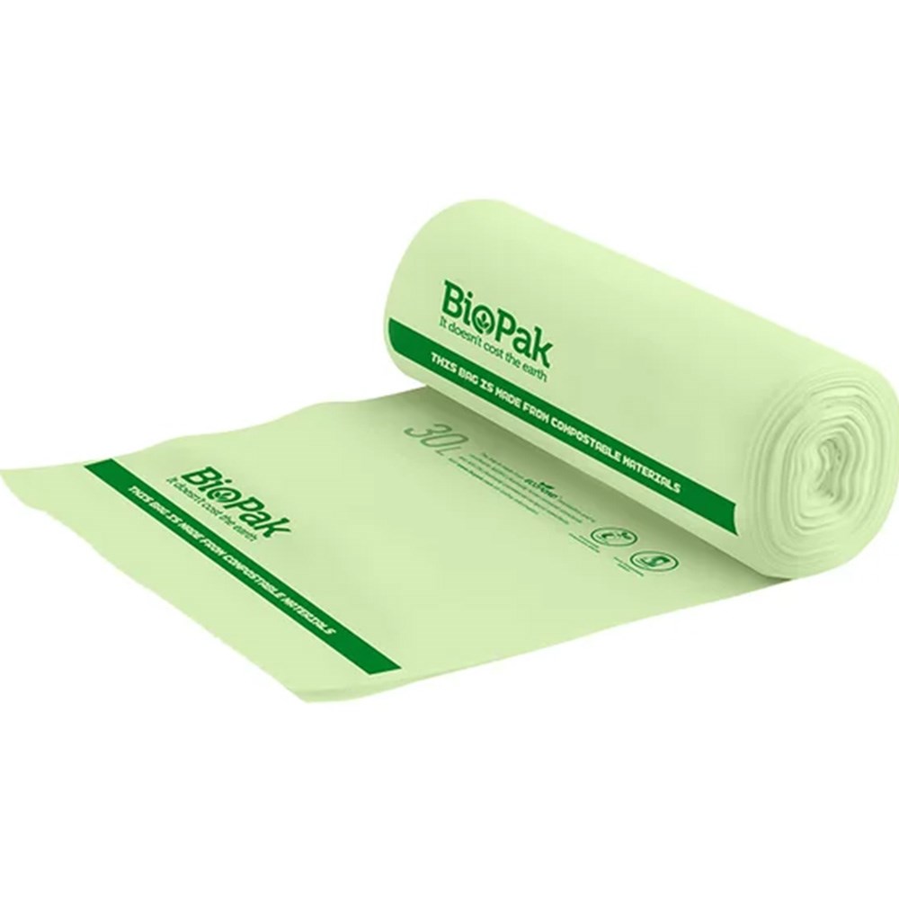 BioPak Compostable Bin Liners 30L Green Roll of 25