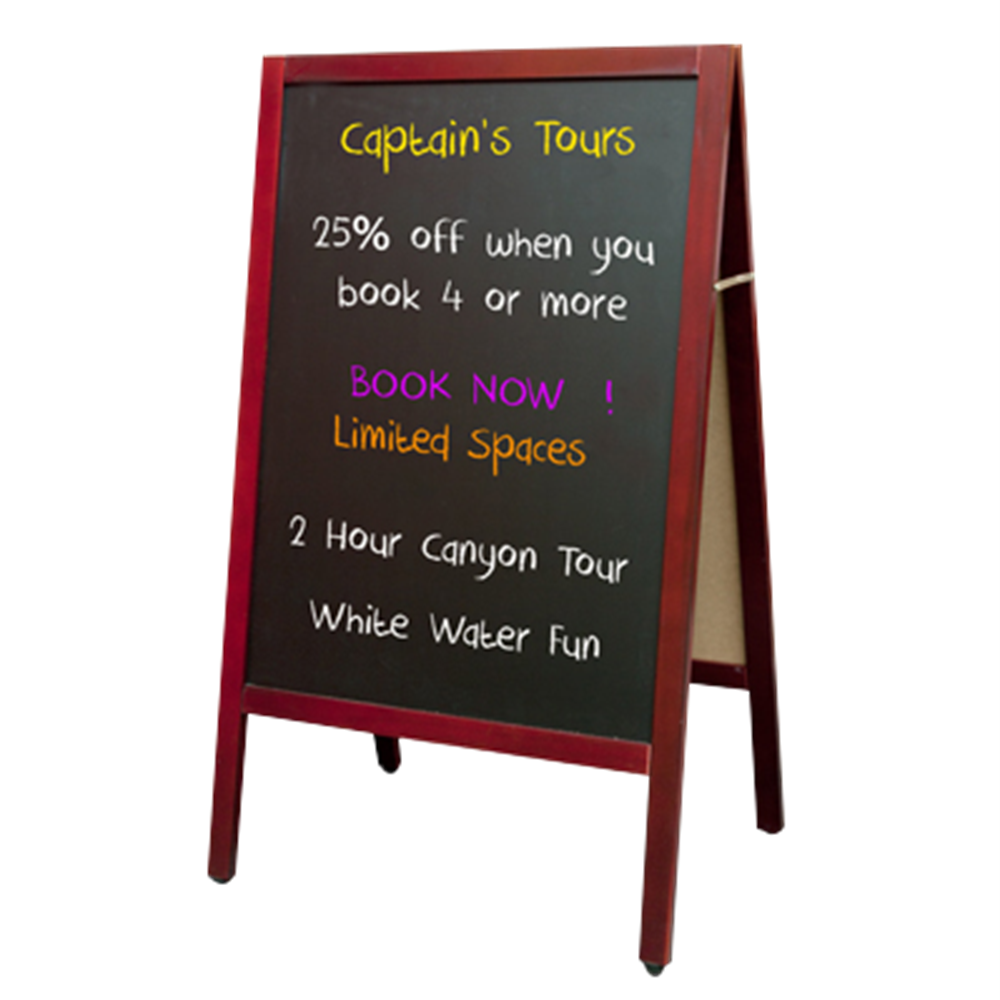 BLACKBOARD A FRAME 990x600 Mahogany Style Timber Frame Double sided