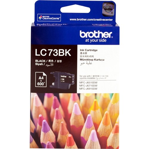BROTHER LC73BK INKJET H/YD BLK Suit J6510dw/6710/6910 600 Pgs