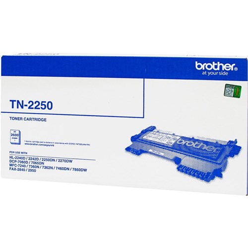 Brother TN2250 Toner Cartridge High Yield Black 2600 pages