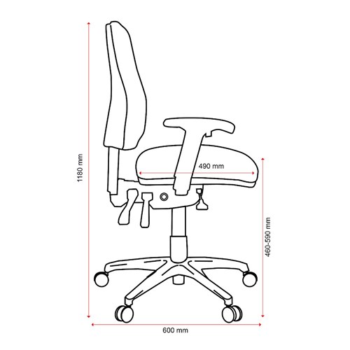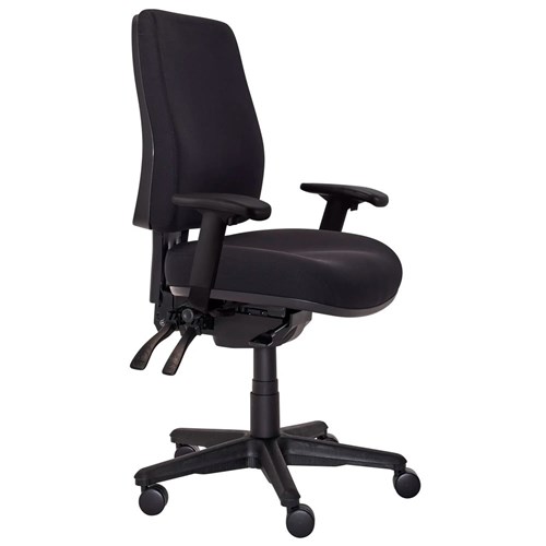 Buro Roma High Back Chair With Arms & Seat Slide Fabric Seat + Black Back (Freight Applies)