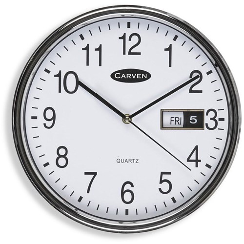 CARVEN WALL CLOCK 285mm Silver Rim W/Date