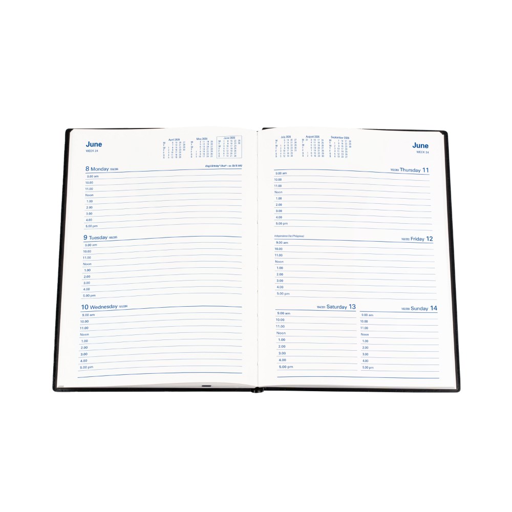 • Bound in a highly durable, welded PVC padded cover. Printed on white paper, week numbers and Julian days.