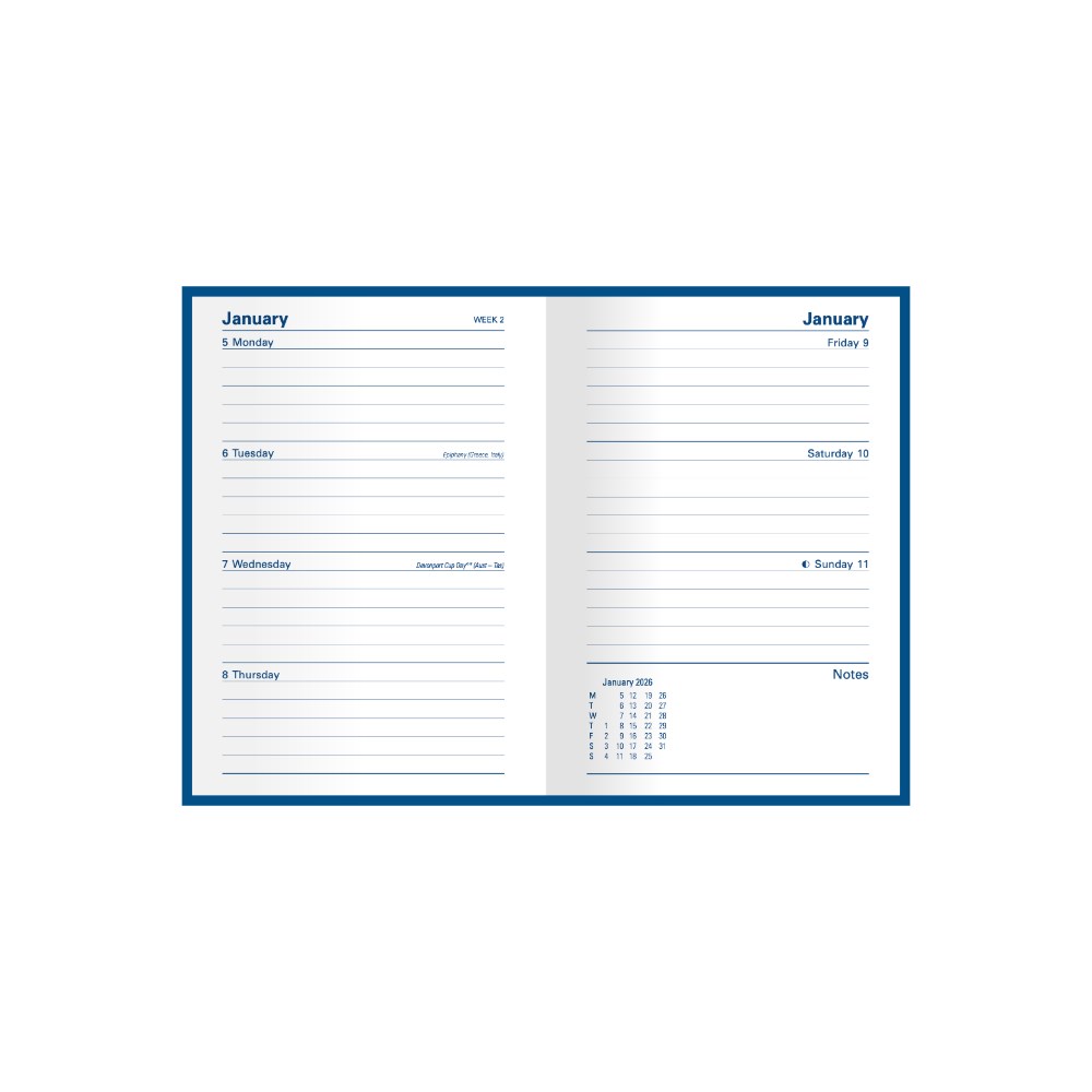 • Hardwearing, linen-look cover. Extensive range of internal features, including notes, planners and essential information.