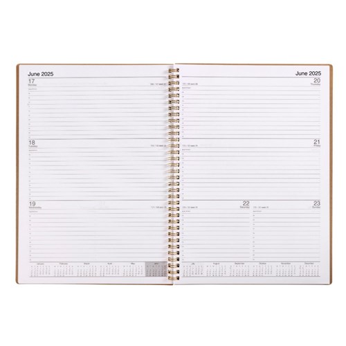 • Kraft hard cover front and back with twin wire-o binding so your diary lays flat on your desk.
