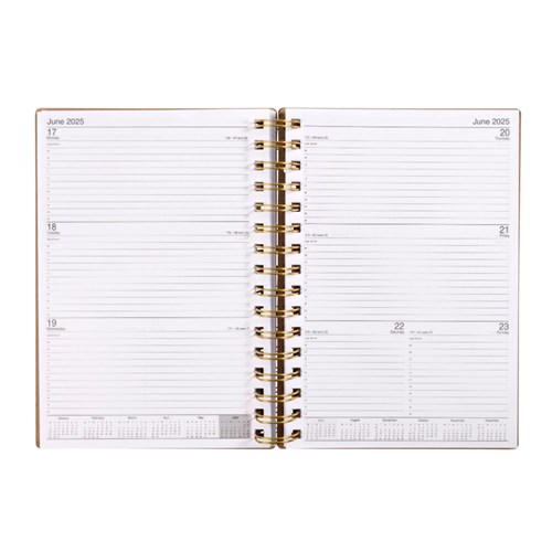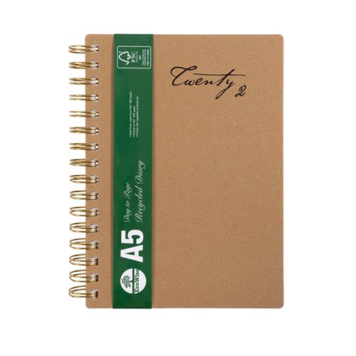 • Kraft hard cover front and back with twin wire-o binding so your diary lays flat on your desk.
