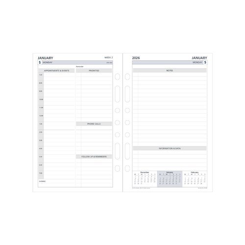DEBDEN DAYPLANNER REFILL Desk 140x216mm Dated 2 Days To View