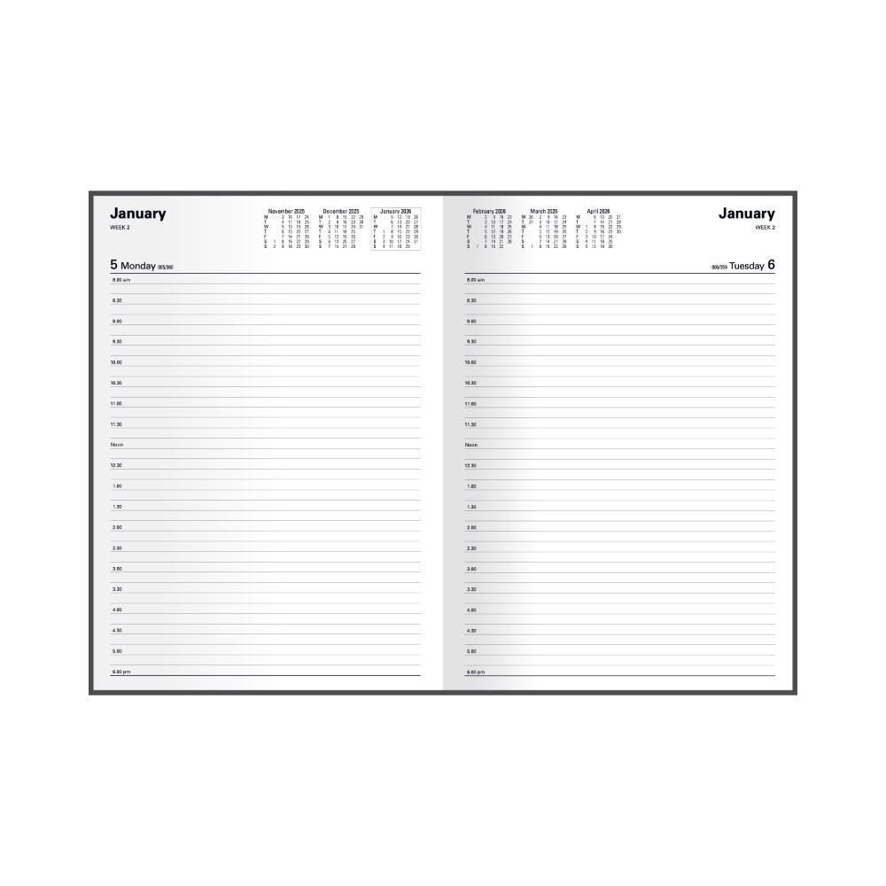 • It is bound in a smart, durable black cover with gold details and a silk satin finish ribbon marker.