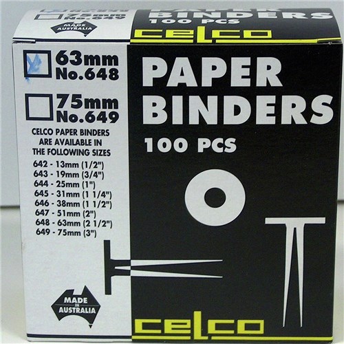 ESSELTE PAPER BINDERS No. 648 - 63mm Box of 100
