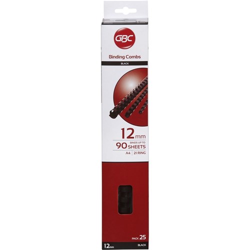 GBC BINDING COMB 12MM 21 LOOP BLACK PK25