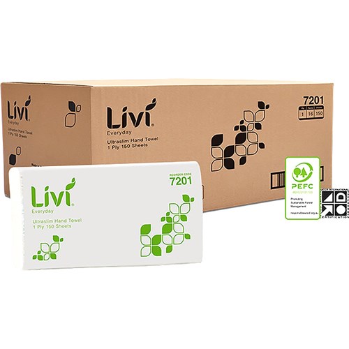 Livi Basics Hand Towel Ultraslim 1 Ply 150 Sheets 230x240 Box of 16