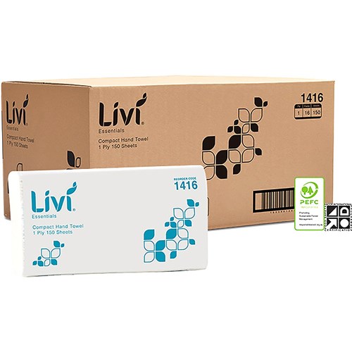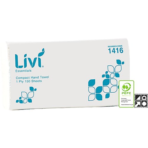 Livi Essentials Interleaved Hand Towell Compact 1 Ply 150 Sheet 200x285mm Box of 16