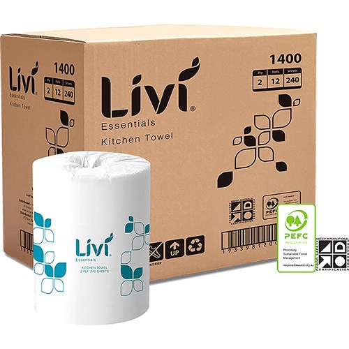 Livi Essentials Kitchen Towel Roll 2 Ply 240 Sheets 225x215mm Box of 12