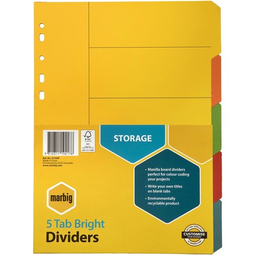 Marbig Manilla Divider A4 5 Tab Bright Colours