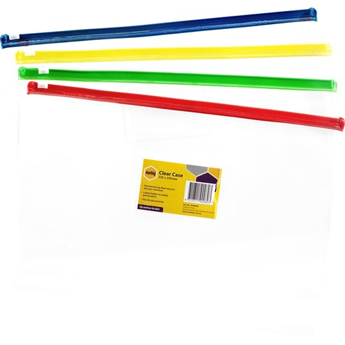 Marbig Clear Case A4 335 x 245 With Coloured Zip Assorted