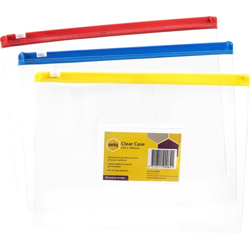 Marbig Clear Case A5 235 x 185 With Coloured Zip Assorted