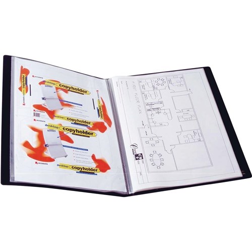 • Display book with insert front cover and insert spine label to personalise your presentation.