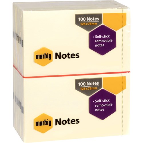 Marbig Repositionable Notes 75mmx125mm 100 Sheets per pad each