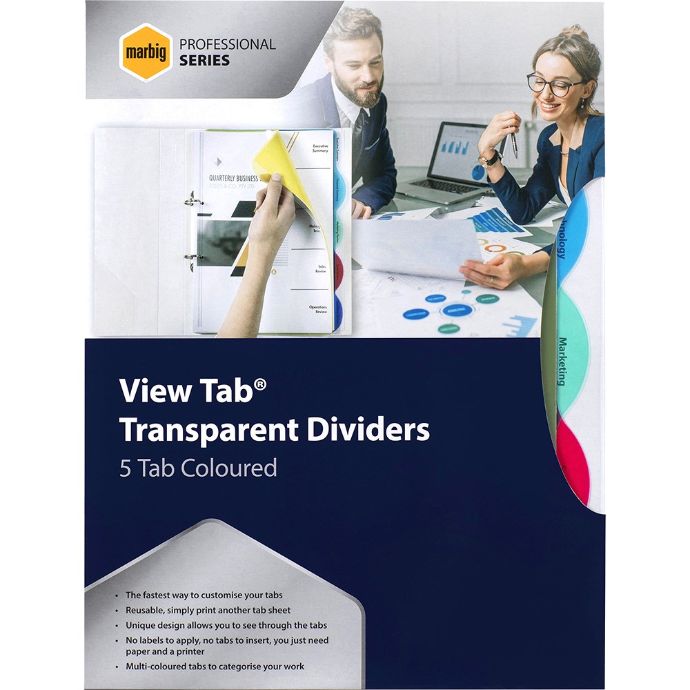 Marbig Professional Series A4 5 View Tab Dividers Transparent Multi Colour