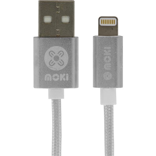 Moki USB To Lightning SyncCharge Cable 90cm Braided Silver