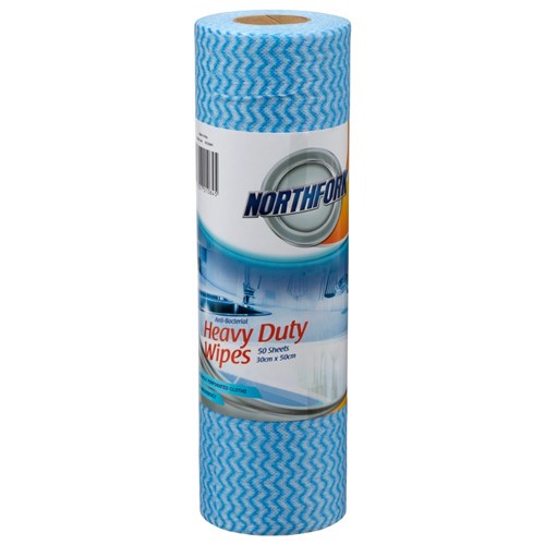 Northfork Antibacterial Heavy Duty Wipes Roll 50 Sheets Blue Ctn 6