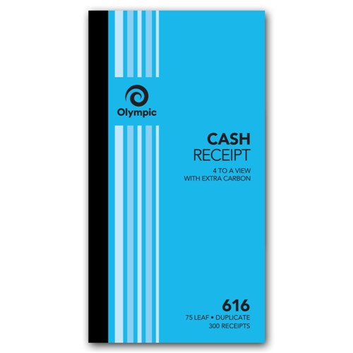 Olympic No 616 Carbon Duplicate Cash Receipt Book 254x135 100 Leaf Blue