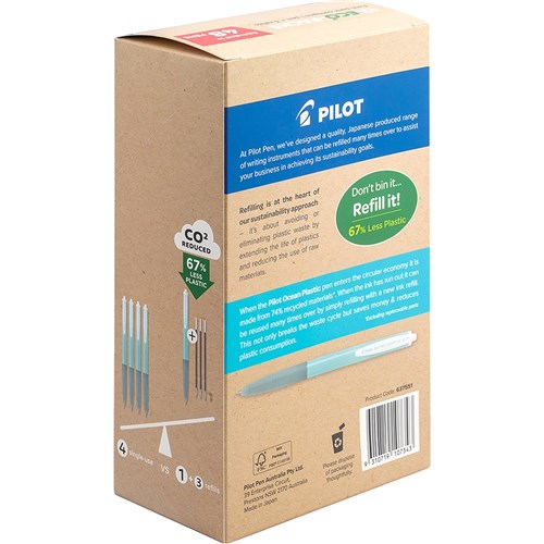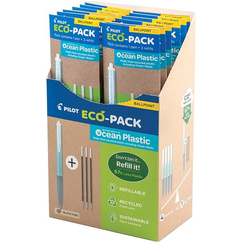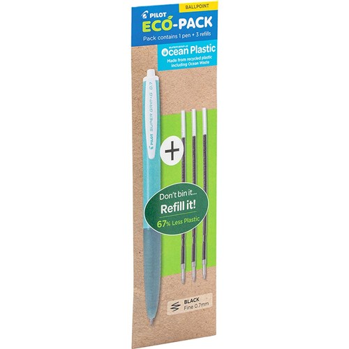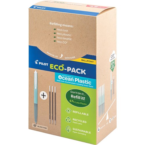 • Recycled materials use to make Ocean Plastic pens, including plastic waste from oceans.
