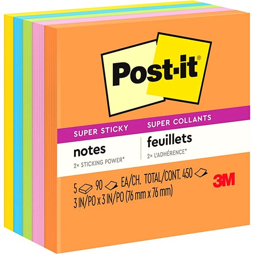 • Super Sticky Post-it® adhesive ensures that notes stick practically anywhere such as computer monitors, filing cabinets & furniture and remain as easily removable as original Post-it® Notes.