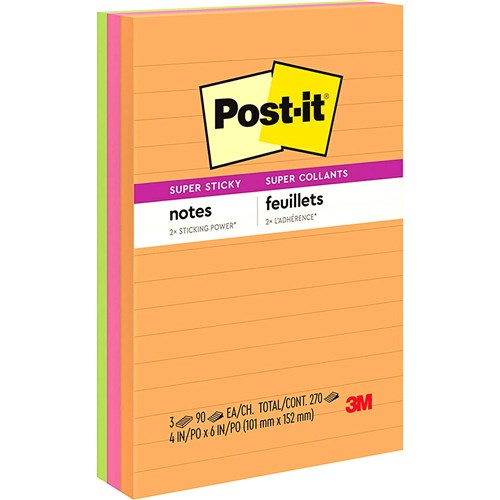 POST-IT 660-3SSUC SUPER STICKY Ultra Colour Lined 98x149 Assd