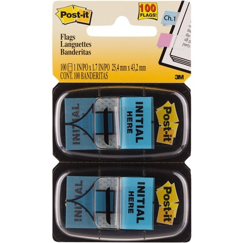 POST-IT 680-IH2 PRINTED FLAGS Initial Here 25x43 Tw/Pk Blue