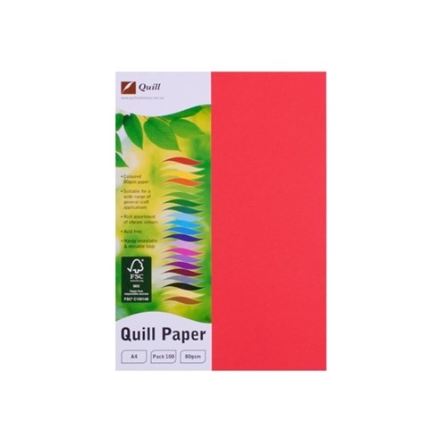 QUILL XL COPY PAPER A4 80gsm Red PKT 100