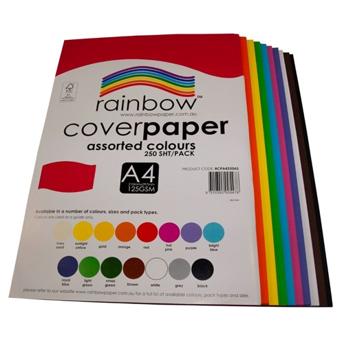 RAINBOW COVER PAPER 125gsm A4 Assorted pk 250