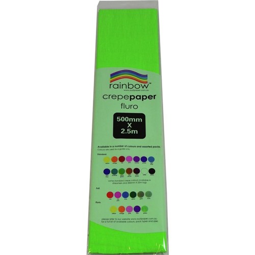 RAINBOW FLURO CREPE PAPER 500mmx2.5m Green