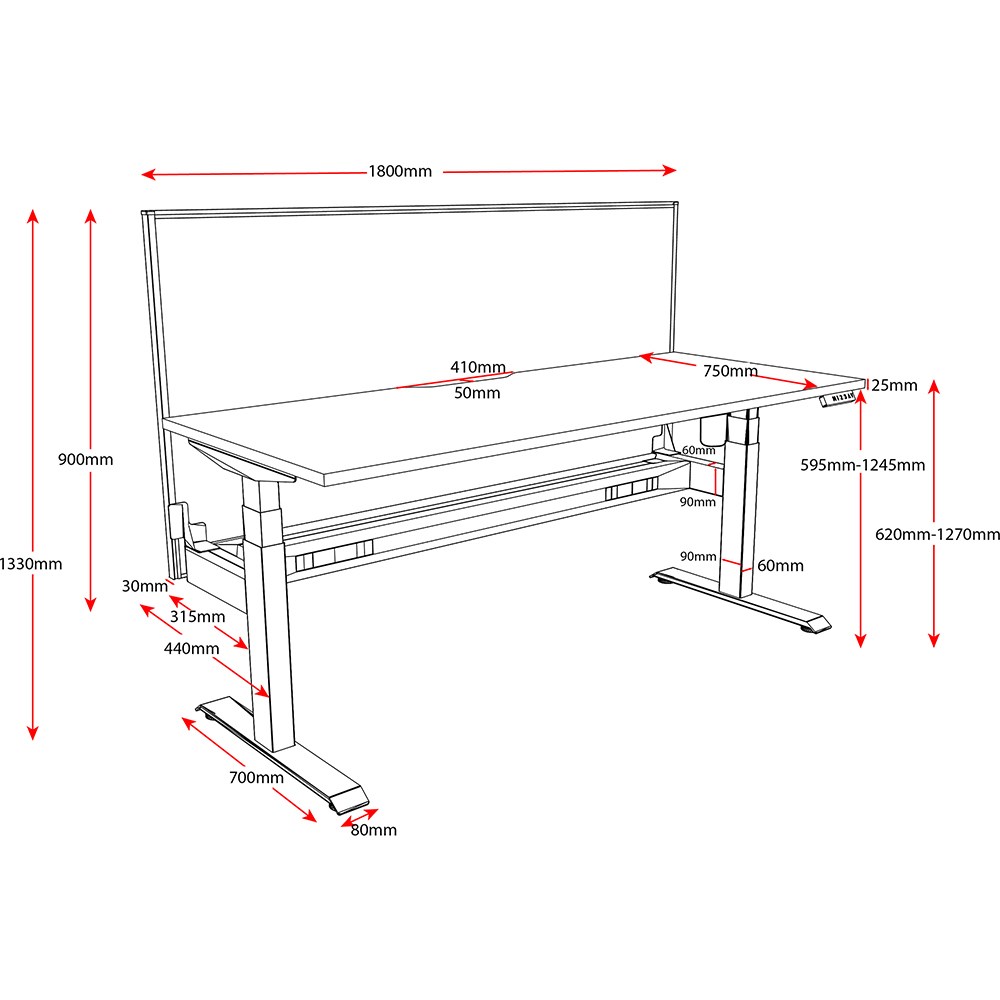 • 620-1270mm height range for desk.
