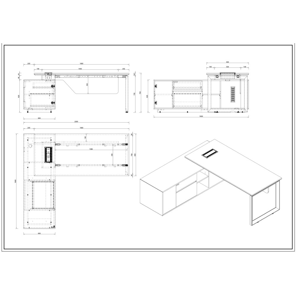 • Desk Dimensions: 1800W x 800D x 748mmH.