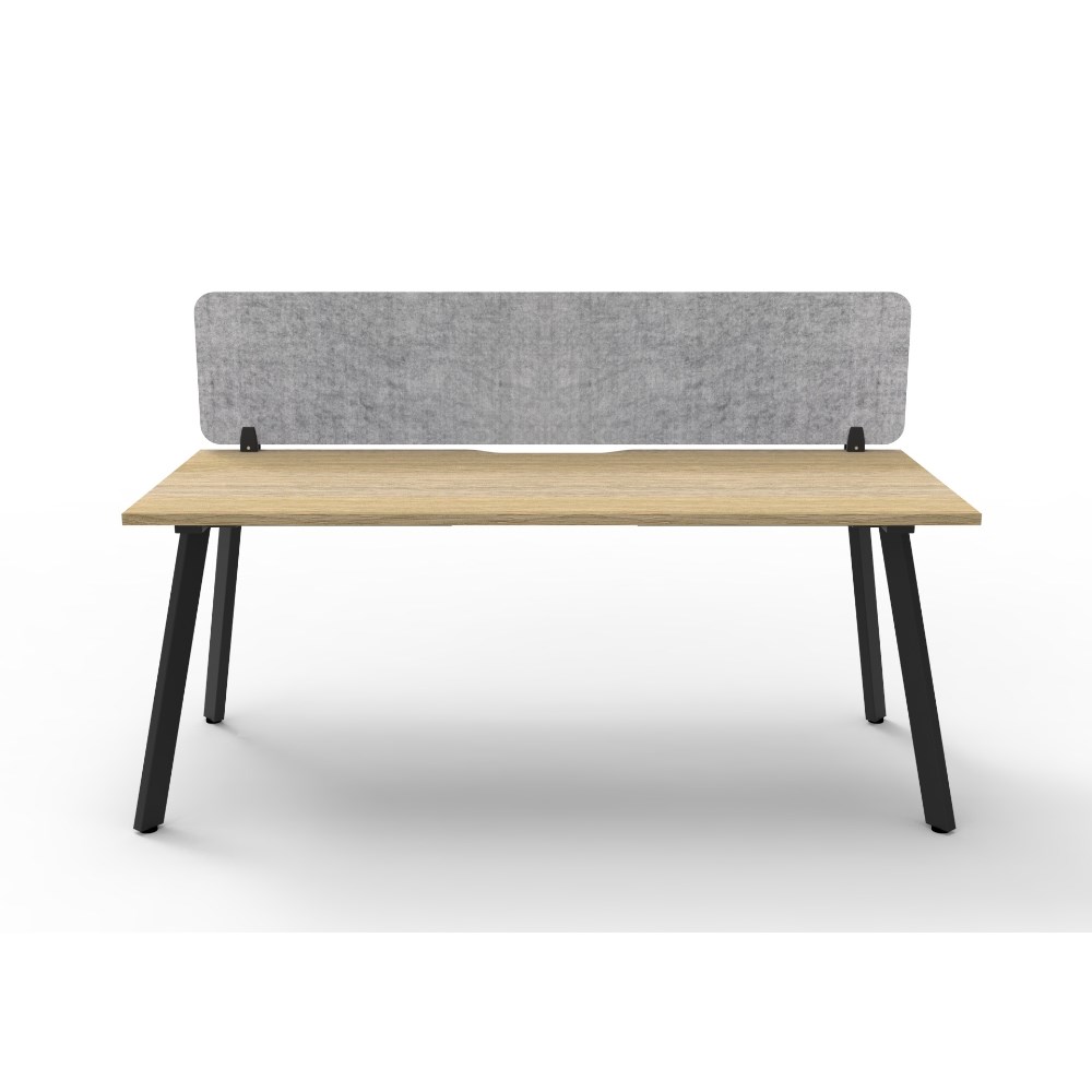 • Natural Oak worksurface with rigid edging and 410mmW x 50mmD scallop cable access. Black Satin powder coat frame. Eco screen.