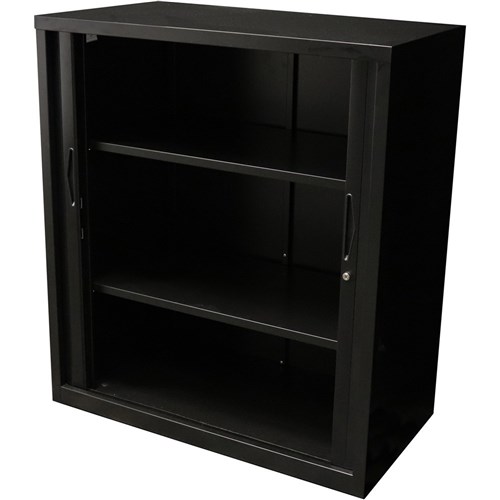 • Rapidline GO Tambour Door Cupboard Includes 2 Shelves 900W x 473D x 1016mmH Black